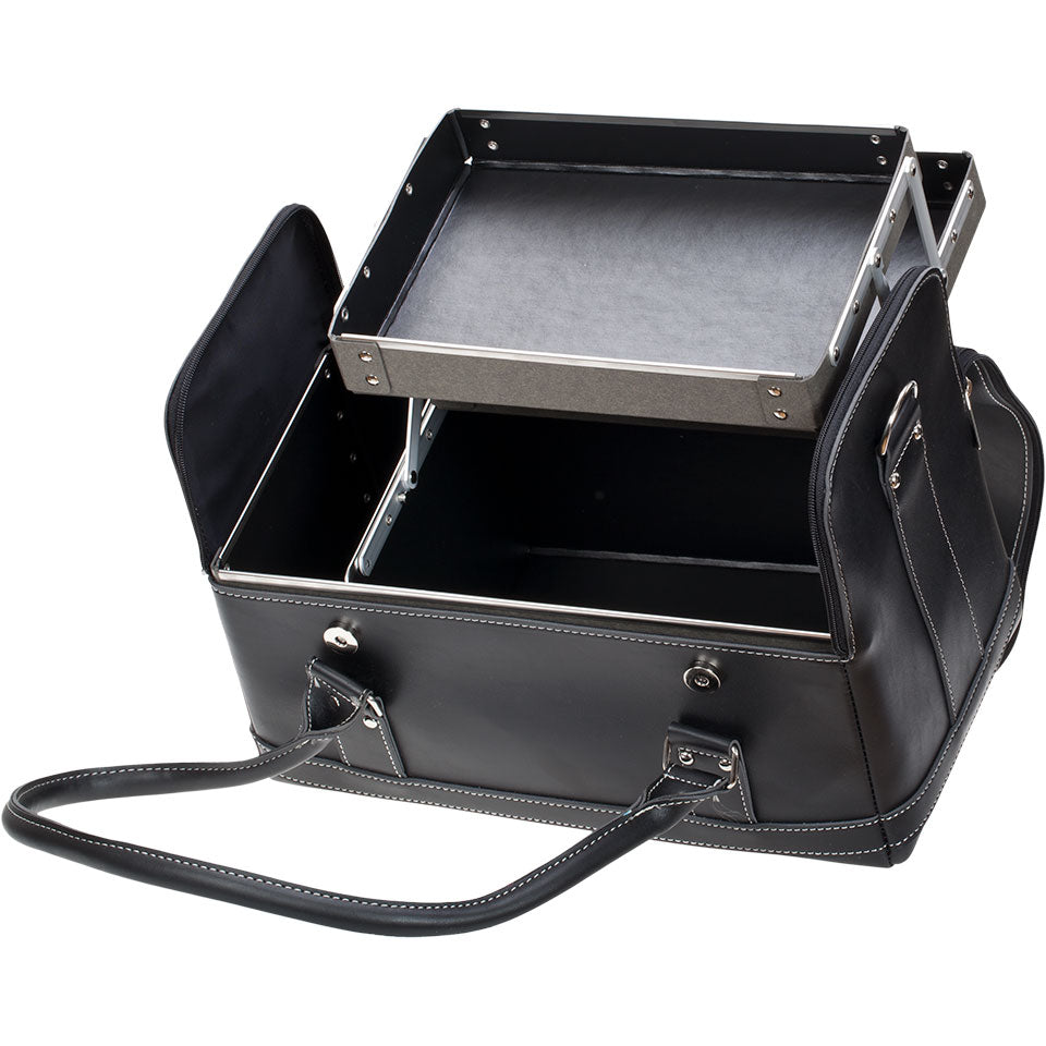 Beauty Make-up Bag is made of sturdy synthetic leather material with handle. For the artist on the move, an extensive make-up assortment can be stowed so as to be well organized and easily accessible.