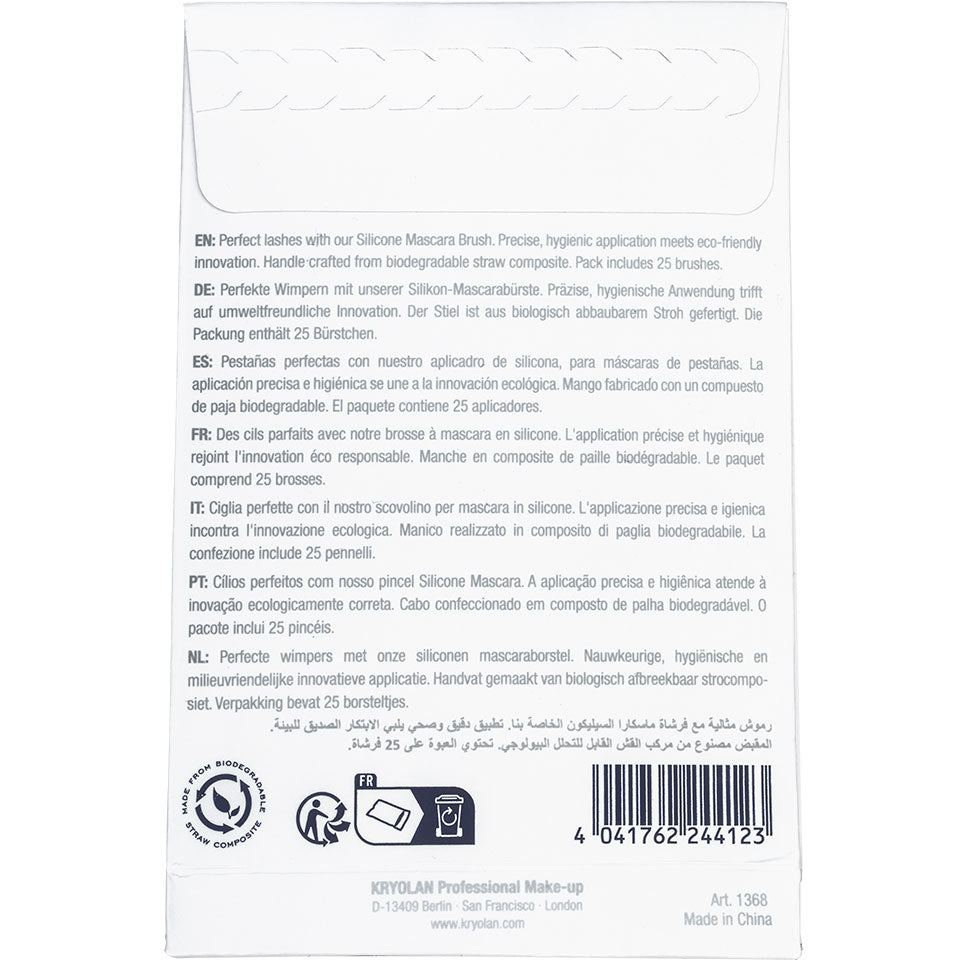 Perfect lashes with our Silicone Mascara Brush. Precise, hygienic application meets eco-friendly innovation. Handle crafted from biodegradable straw composite.